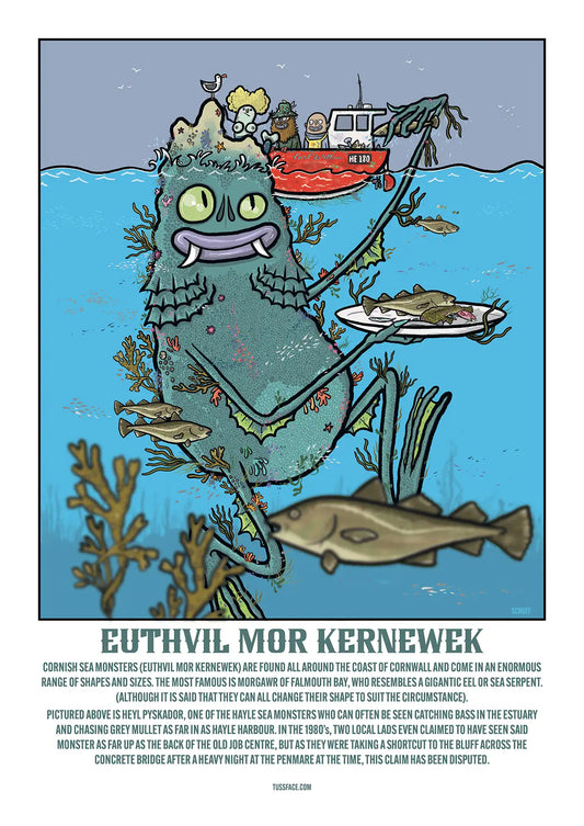Euthvil mor kernewek - Cornish Sea Monster Giclee print.